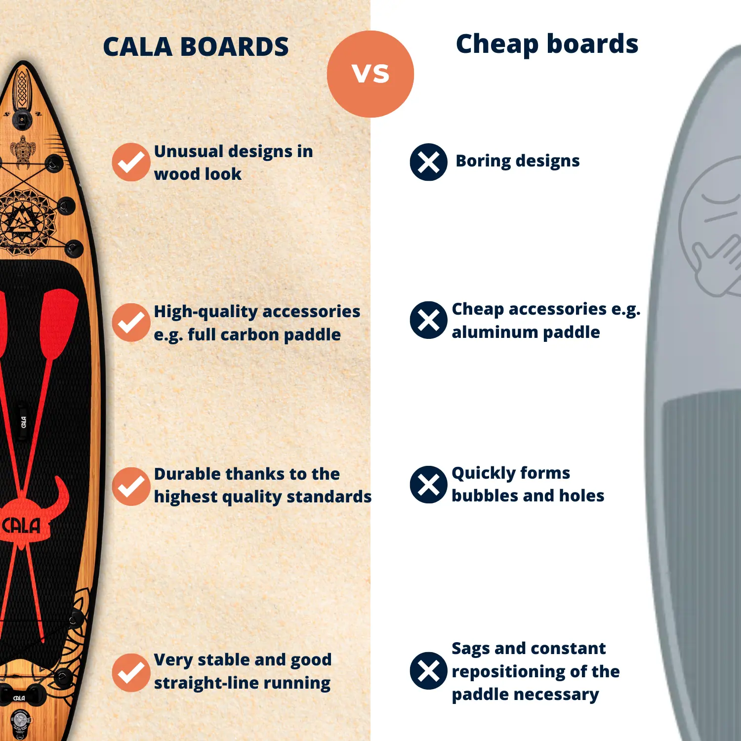 At CALA, we prioritize quality and sustainability. Cheaper boards may seem cheaper at first, but often end up as waste early on, which is both frustrating and harmful to the environment.