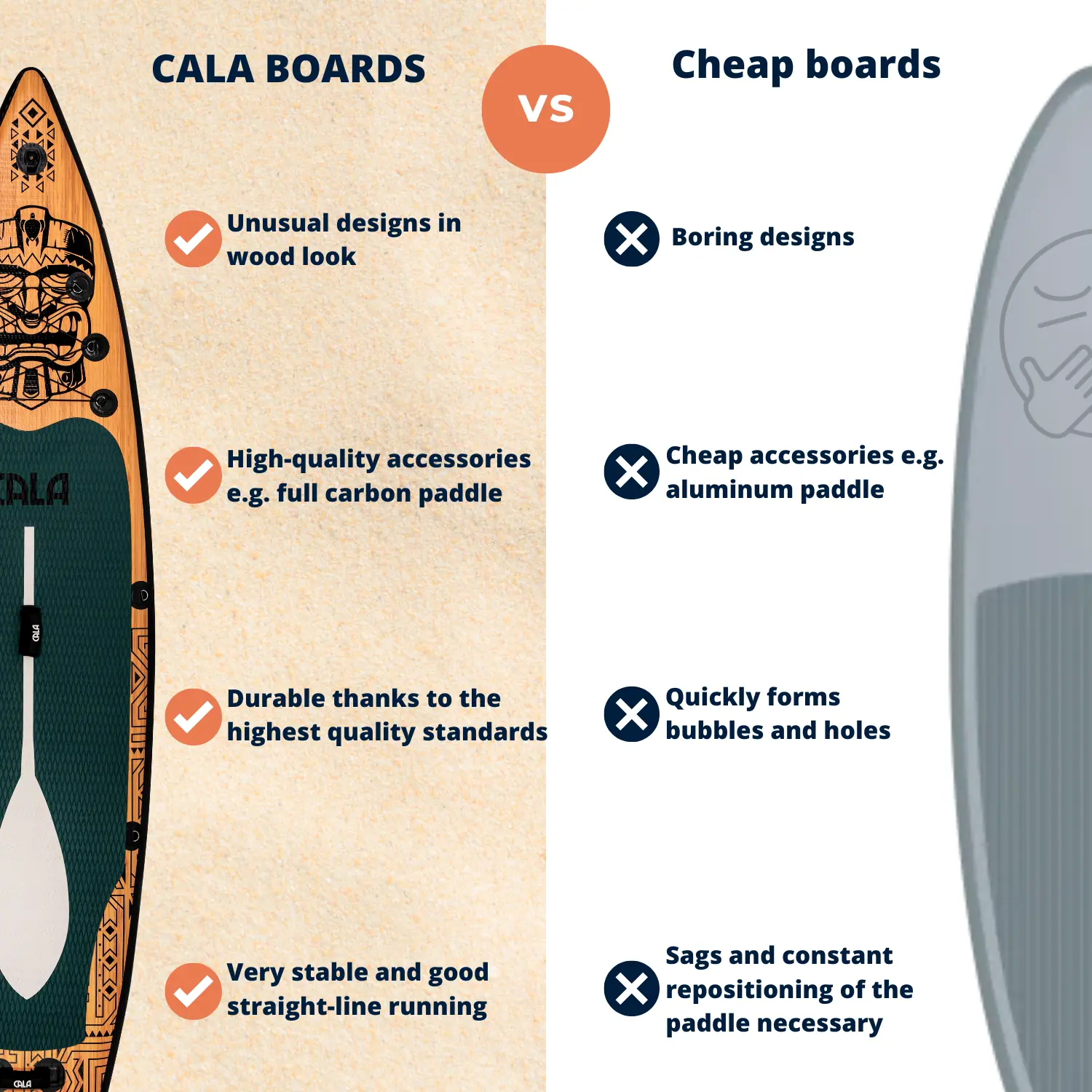 At CALA, we prioritize quality and sustainability. Cheaper boards may seem cheaper at first, but often end up as waste early on, which is both frustrating and harmful to the environment.