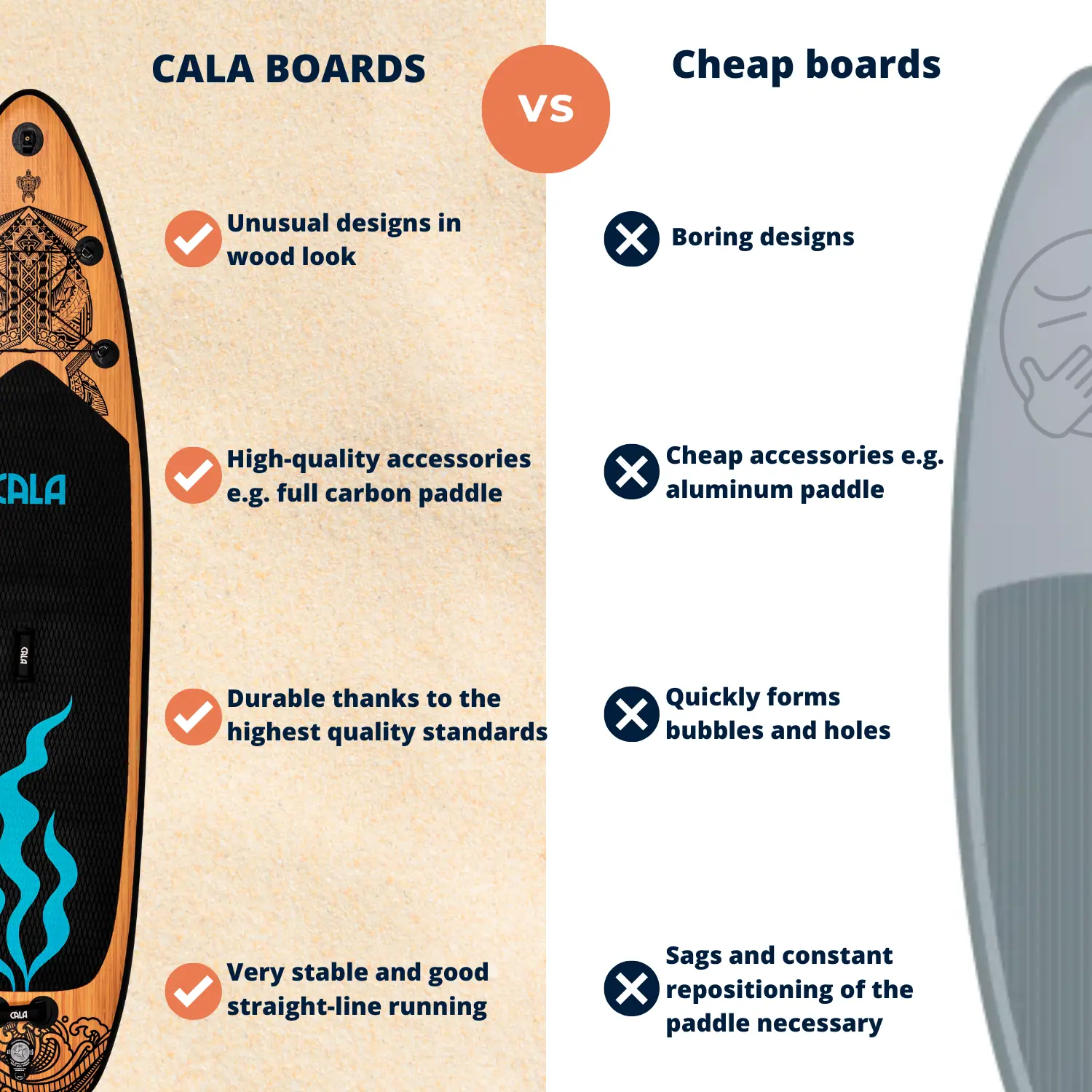 At CALA, we prioritize quality and sustainability. Cheaper boards may seem cheaper at first, but often end up as waste early on, which is both frustrating and harmful to the environment.
