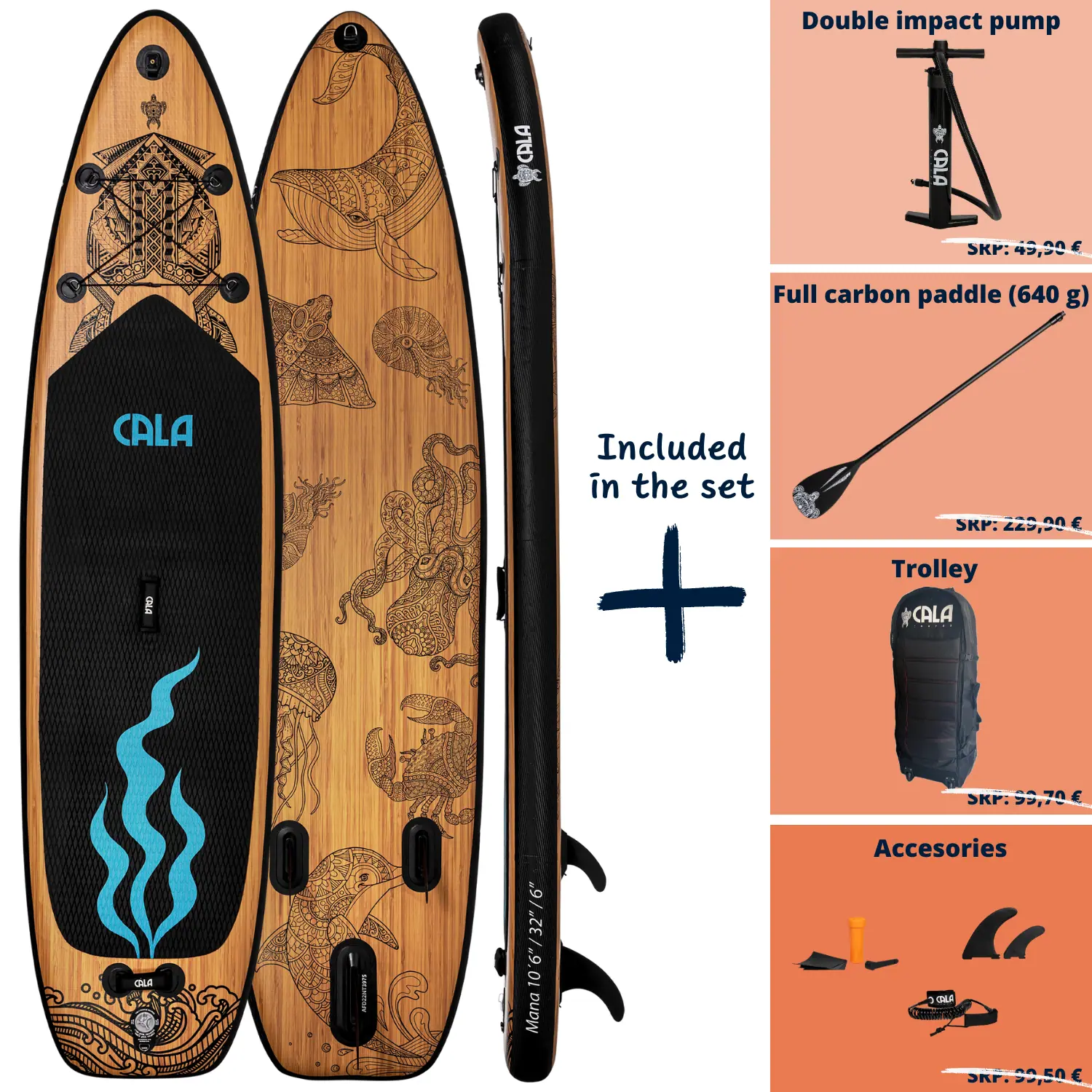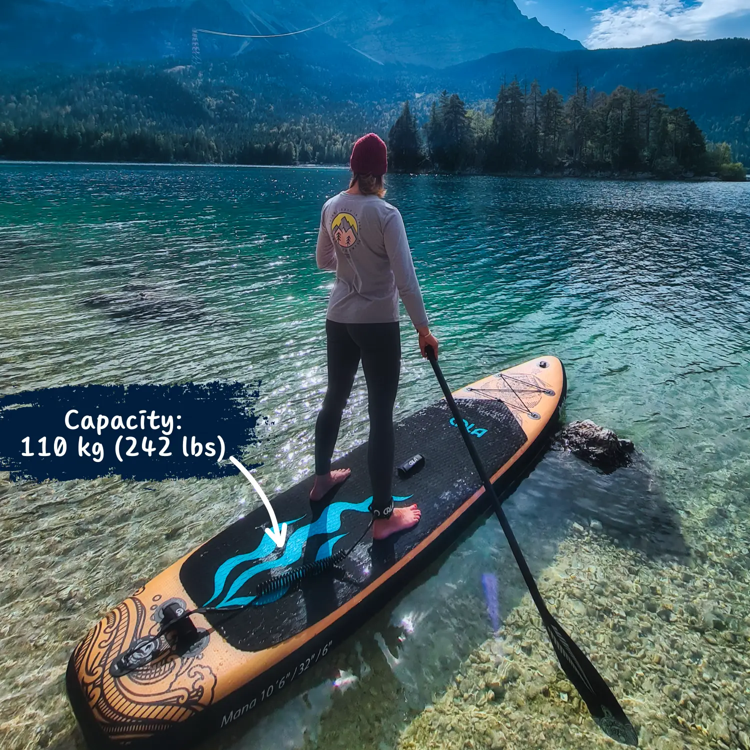 Whether you're a beginner or already have surfing experience – with this versatile all-round model, you can effortlessly conquer all waters and make your boldest SUP dreams come true. The enticing wave designs on the pad and tail are the essence of Mana! In our spacious attached trolley backpack, you can easily take the board everywhere you go.