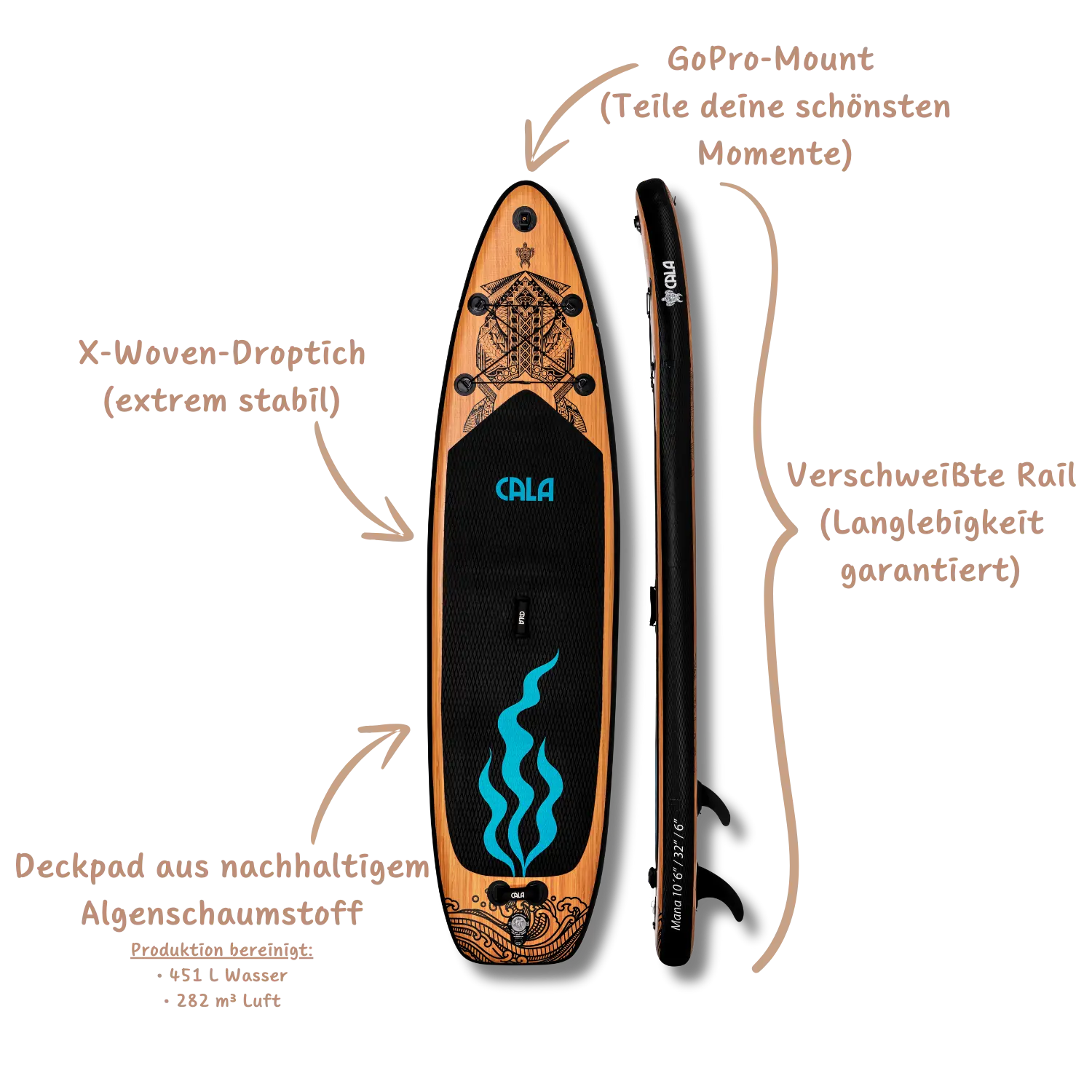 Unsere Boards werden nach deutschen Qualitätsstandards gefertigt und gehören mit zu den besten auf dem Markt. Die X-Woven-Technologie im Kern und die unter Hitze verschweißten Rails gewährleisten, dass unsere Boards so stabil wie ein Brett und nahezu unzerstörbar sind.